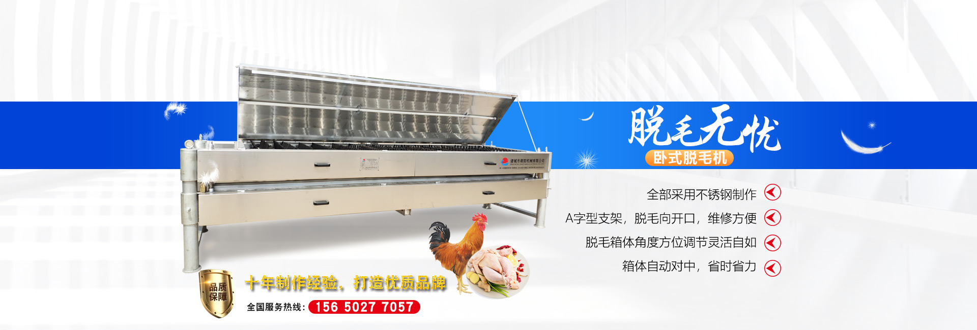 公司長期與國內(nèi)外屠宰加工企業(yè)合作,走引進——消化——創(chuàng)新和自主研發(fā)相結合的道路,在國內(nèi)外同類產(chǎn)品的基礎上,不斷更新和改造。公司主要設備有:A字型立式脫毛機、臥式脫毛機、強力噴淋機、松毛機、浸燙池、螺旋預冷機、禽籠清洗機、電暈機、兔扯皮機、兔割前爪/后爪機、剝胗機、自動洗鉤機、螺旋燙爪機、雞爪脫皮機、分割輸送帶等屠宰用設備。其中,公司獨力發(fā)明生產(chǎn)設計的“電動調(diào)節(jié)脫毛機”及“自動控水控溫浸燙池”順利通過知識產(chǎn)權局的實質性審查。公司所生產(chǎn)的設備 可與國外同類產(chǎn)品配套使用,設備遠銷阿爾及利亞、澳大利亞等中東、非州等并建立了長期穩(wěn)定的合作關系。